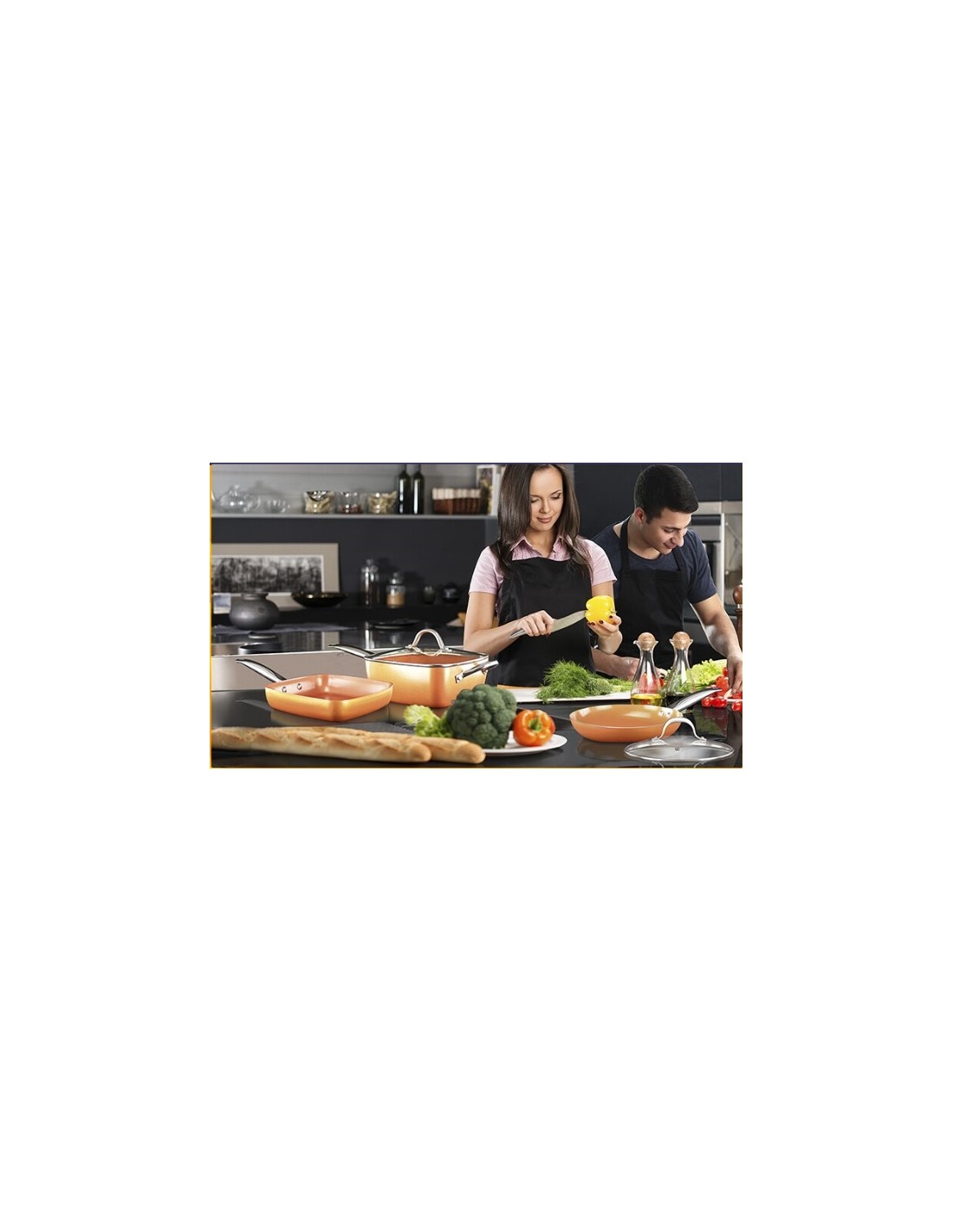 Proteção térmica para um controle de calor eficiente, sua capa externa de cerâmica antiaderente é tratada com banho de cor cobre.