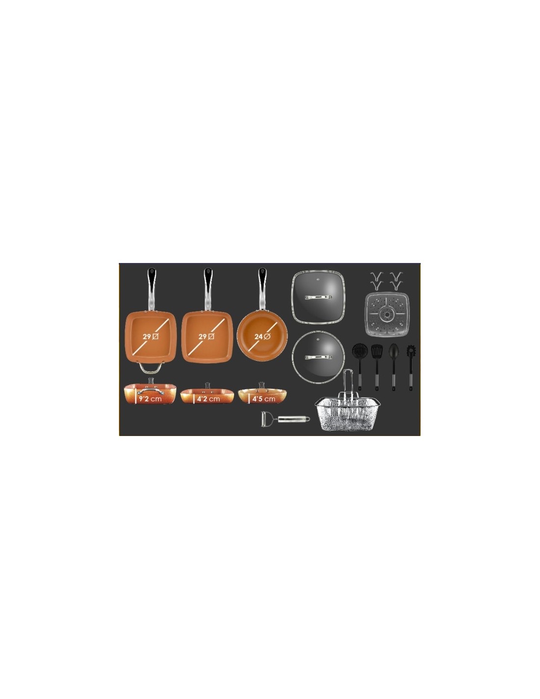 Trem de Cozinha com Design inspirado em Toscana – Peças com Banho de Cor cobre e fabricadas em alumínio de Alta Qualidade.