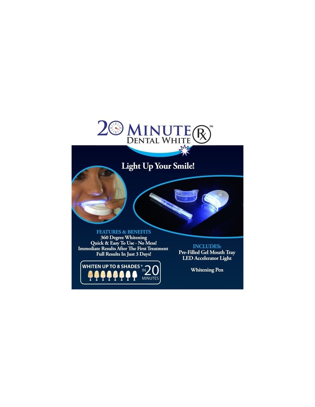 Recupere a cor branca e natural dos seus dentes com 20 Minute Dental White .