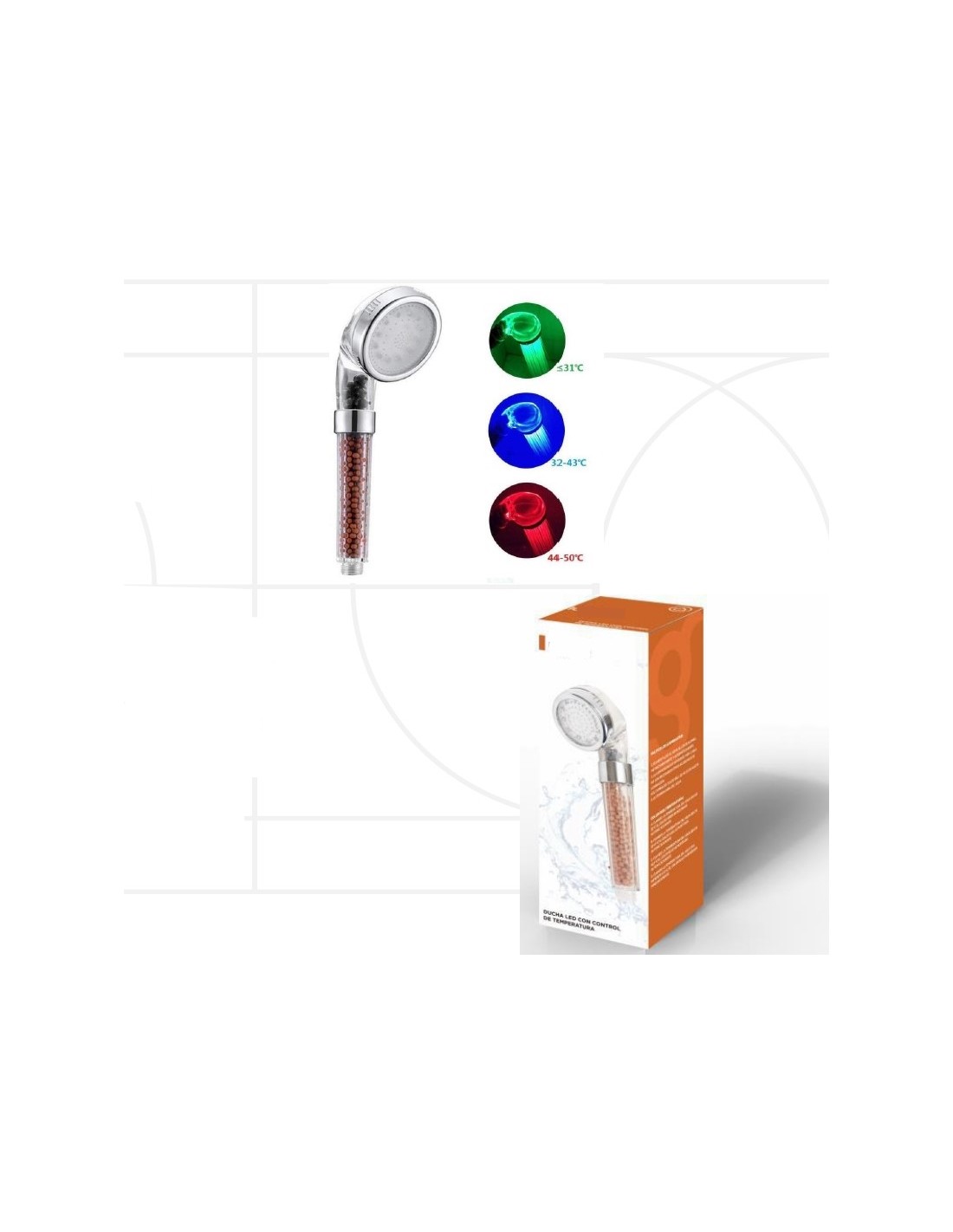 3 cores controladas pela temperatura da água.Filtra cloro e impurezas da água e melhora a saúde da pele e cabelo.3 tipos de jato.As luzes LED não necessitam de bateria.