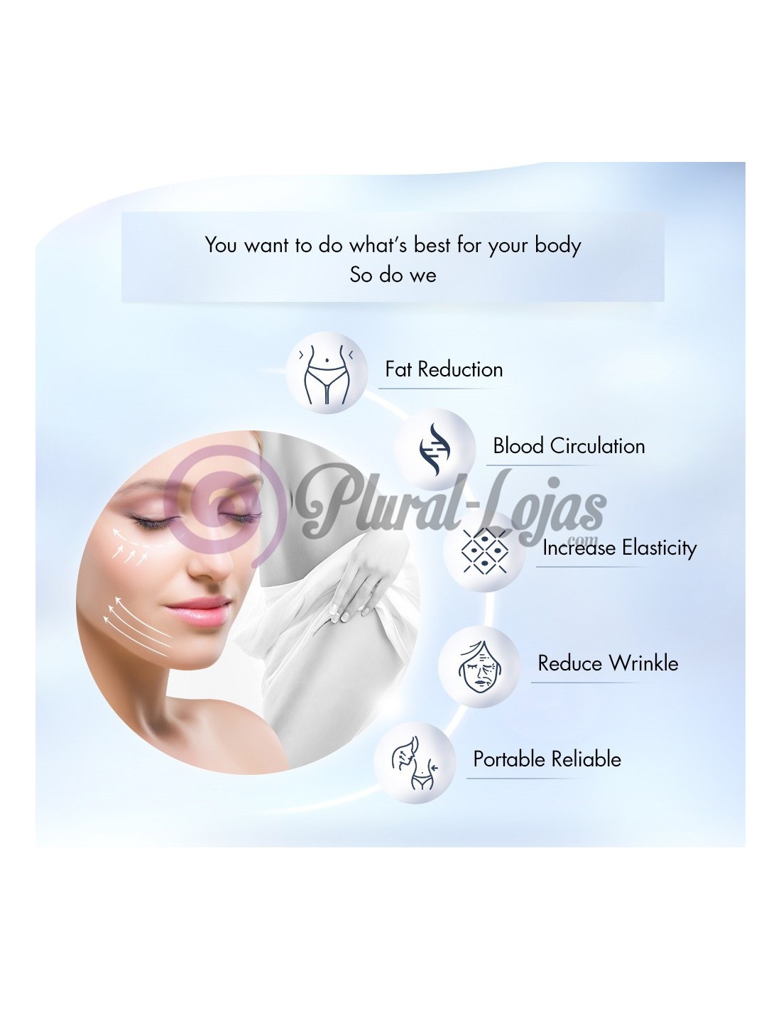 RF converte energia elétrica em energia térmica para penetrar profundamente na pele para acelerar a circulação sanguínea e tecido subcutâneo para estimular o colágeno, proteínas e renovação celular.