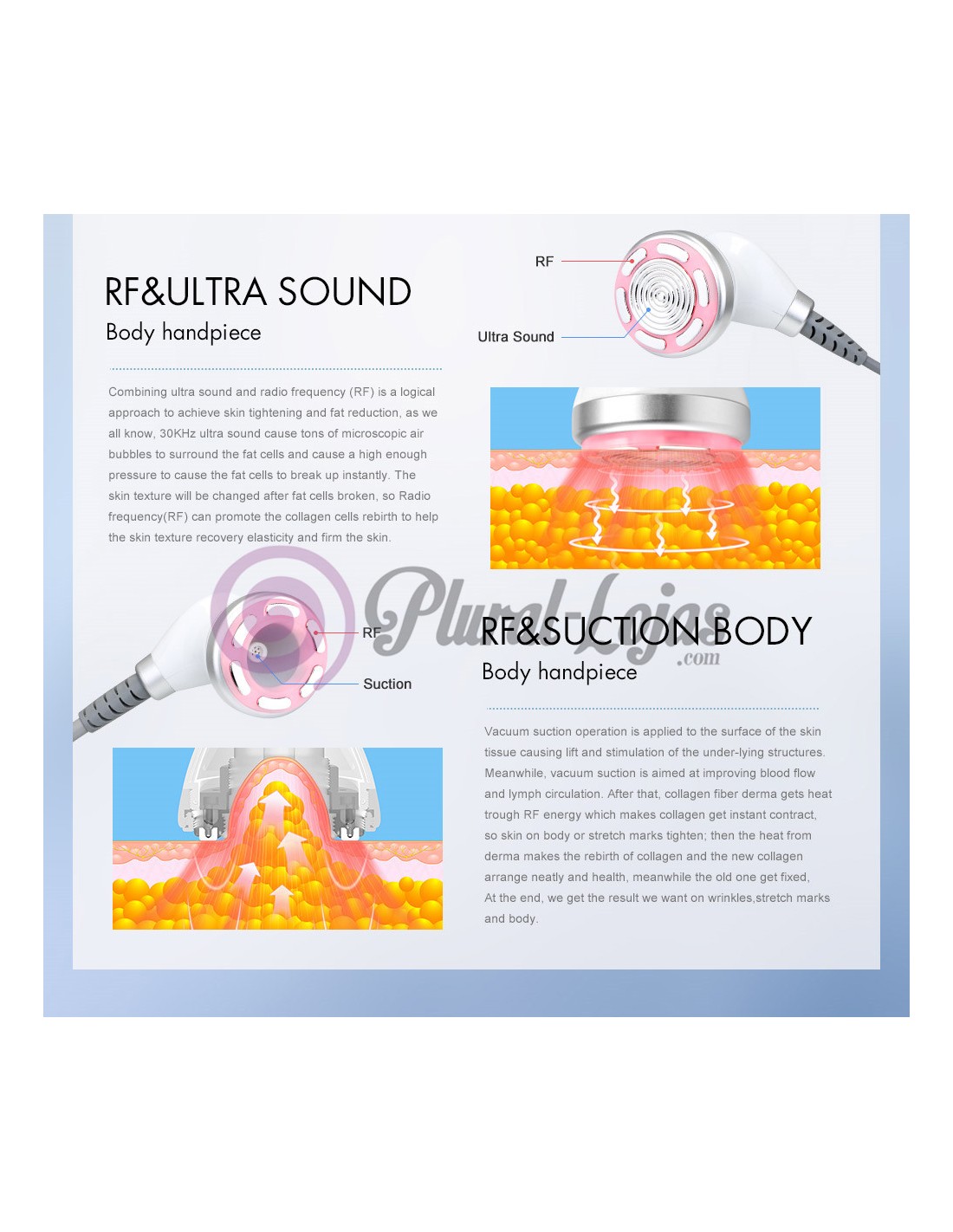 As duas funções são usadas em combinação. A cavitação melhora o desempenho do RF para destruir a gordura várias vezes, danificando-a primeiro.