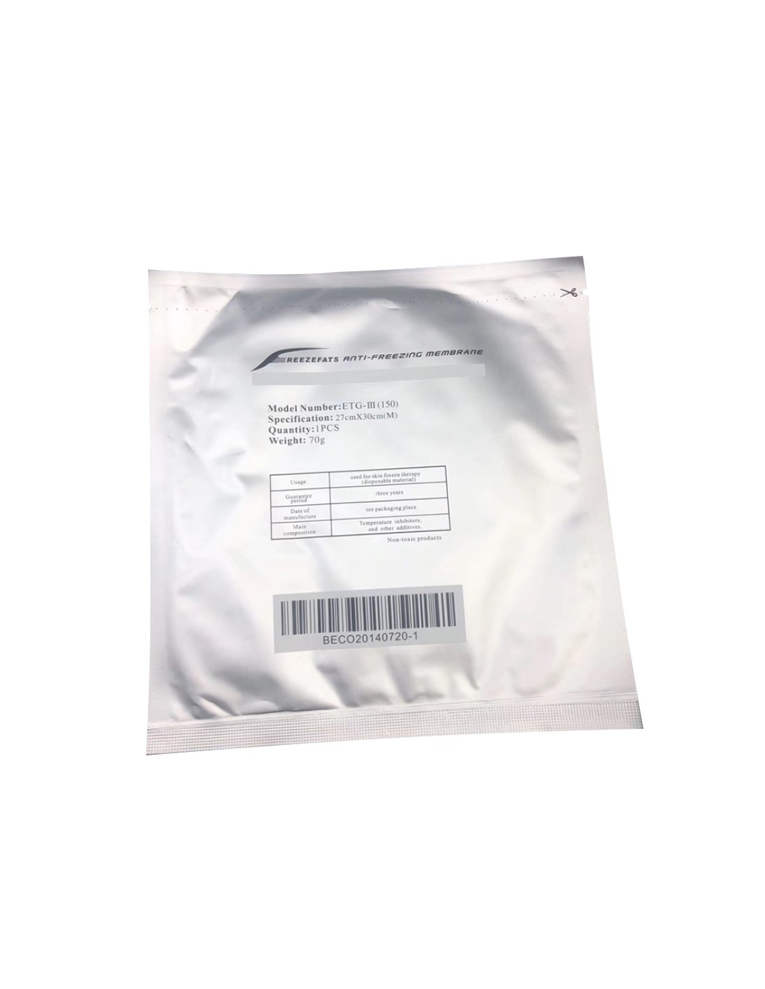 Membranas anticongelantes, 30X27 cm para tratamento de criolipolise, de uso único e individual.