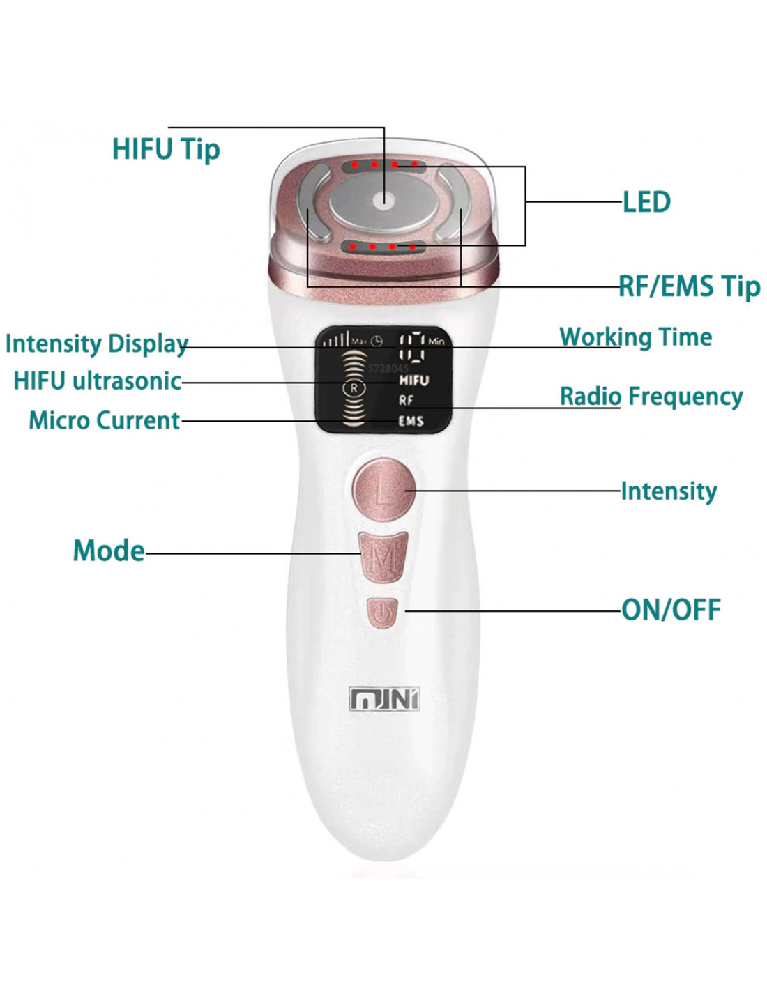 Dispositivo portátil de cuidados com a pele para levantar a pele e reduzir a aparência das rugas, use principalmente para apertar a pele do pescoço e do rosto, use este dispositivo facial para alcançar o efeito de remoção de rugas, eliminação de linhas finas e lifting facial.
