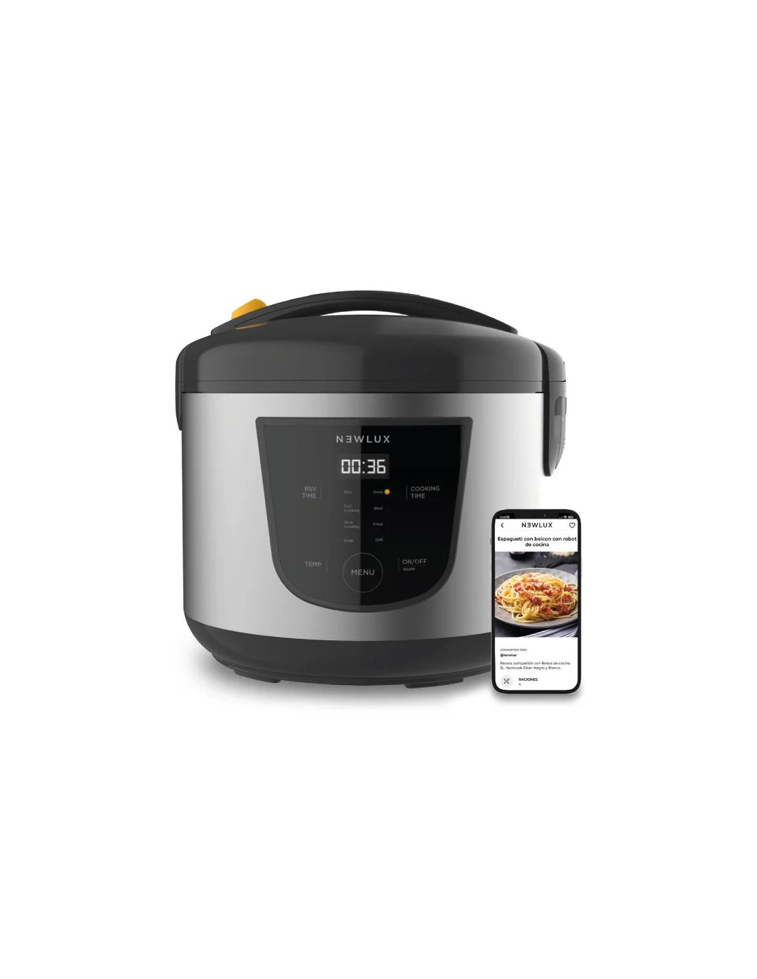 Cozinhe automaticamente todos os tipos de receitas com este robô de cozinha multifuncional NEWCOOK. Fácil de usar e até 8 menus pré-configurados para colocar apenas os ingredientes e é isso! Obtenha os sabores e texturas mais tradicionais graças aos sensores de temperatura que permitem diferentes tipos de cozimento no mesmo robô. Sua inteligência artificial detecta a temperatura dentro da cubeta e ajusta a potência de acordo com o menu selecionado.