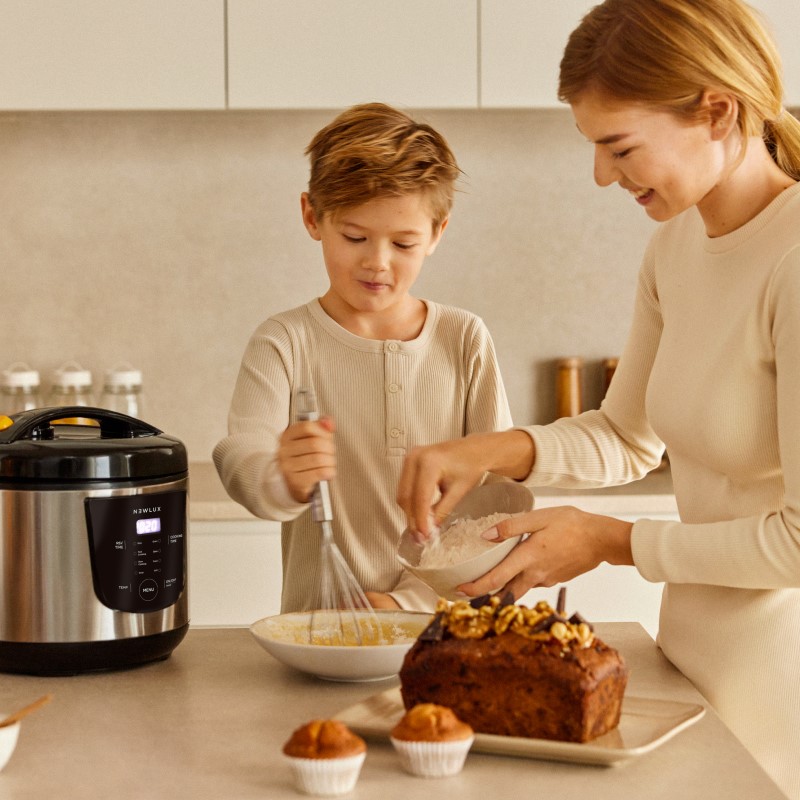 Programe-o até 24 horas antes para preparar a comida sempre que quiser. E se você precisar manter a comida quente por mais algum tempo, não se preocupe. Quando o robôt de cozinha multifuncional termina de cozinhar automaticamente, mantém a comida quente, sem deteriorar a qualidade, a textura ou o sabor.